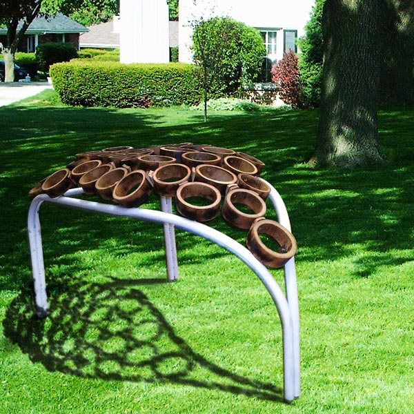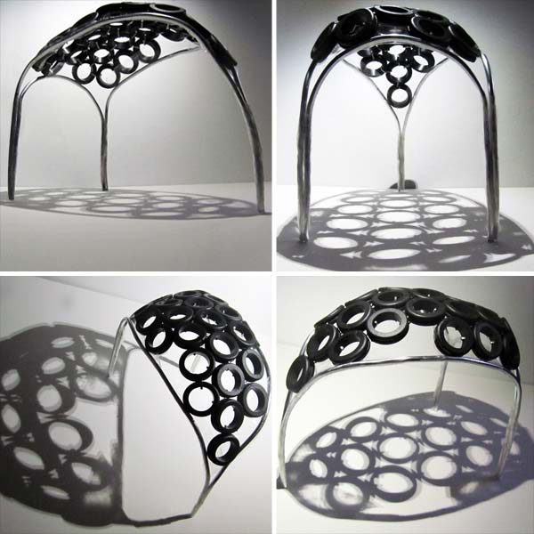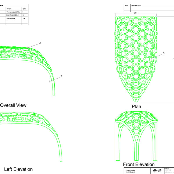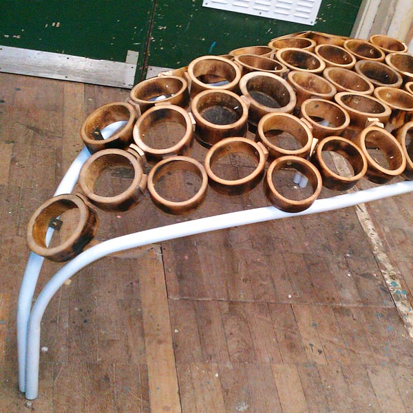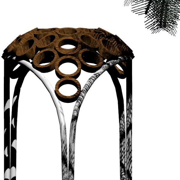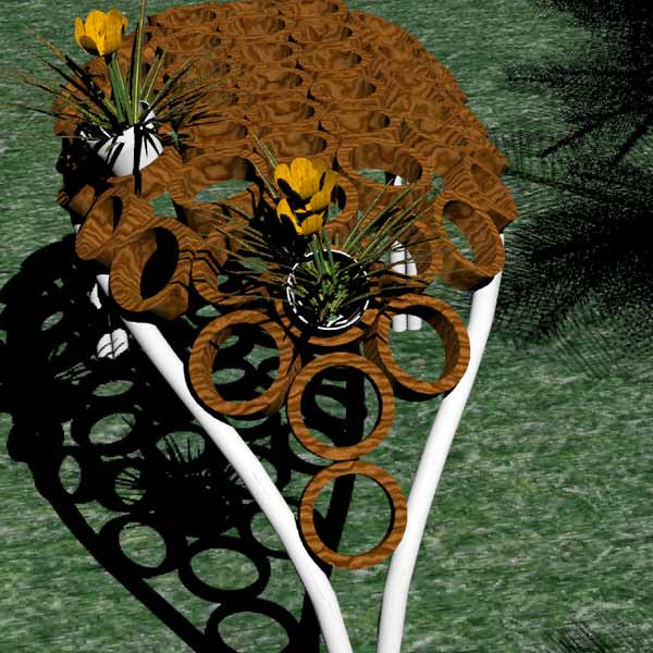 1:5 Scale model showing the tapered front to reduce weight on the front single leg. The possible shadows created for not only a functional garden product but as a garden sculpture.