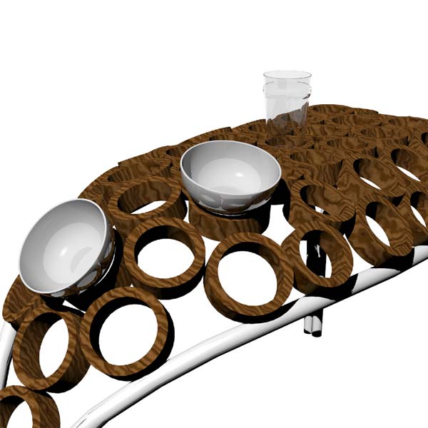 Visual scale model. The intended renewable material for the circular structure is Bamboo. Bamboo is claimed to grow 35-40 inches per 24-hour period.