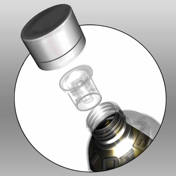 Exploded visual model to show the piercing design to enable connection of two bottles.